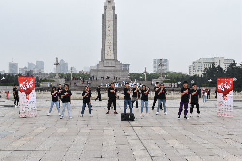 八一广场中央,“我们最好的舞台,大幕拉开欢迎你到来,人山人海一起喝彩感受我的爱”,一首《最好的舞台》,信息青年用他们的劲歌热舞演绎出当今青年的活力激情。当《我爱你中国》音乐响起时,信息青年们身着印有“青春”字样的衣服、脸上贴着五星红旗贴纸、手上挥动着五星红旗,深情演唱歌曲《我爱你中国》,歌词“我爱你中国,亲爱的母亲”感染着周围的人,行人纷纷驻足观看,跟随旋律一起唱起来。“我觉得大学生的表演充满朝气、富有活力,还能够弘扬新时代青年积极的精神。”围观的市民高先生对此作出如此评价。接下来信息青年们分别来到了步行街、秋水广场、万达金街等四个地点,依然用活力四射的舞蹈,深入人心的演唱为人们带来精彩纷呈的“快闪”。