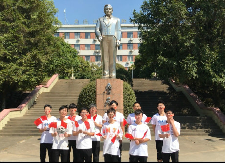 同学们在詹天佑像前为祖国庆生