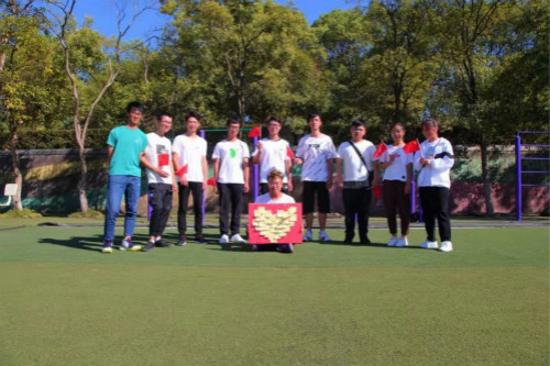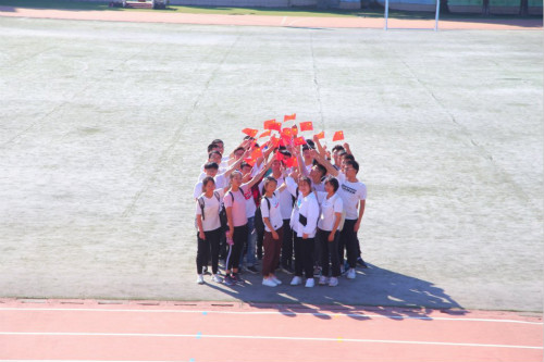 在南区田径场,全班同学进行创意合影,摆出心形等形状,用行动表达对祖国的热爱与祝福。手中的小国旗向中心聚拢,不仅表现了同学们强大的班级凝聚力,也象征着民族凝聚力随着祖国的发展不断增强。