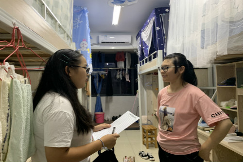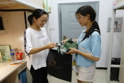青协志愿者们分组走访大一新生寝室,并向他们说明此次活动的细则以及捐献后军训服的去向,当即就有新生愿意捐赠出自己的军训服装。捐赠军训服的新生表示,将不需要的军训服装捐赠给需要的环卫工人以及将实习金工的同学,不仅能让资源得到充分利用,还可以传递一份爱心。
