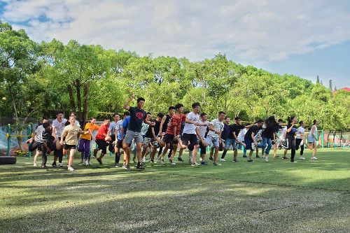 走出严肃的会场,主席团和部长团全体成员来到绿茵场上,开展趣味浓浓的素拓活动。每个小组齐心协力,完成游戏闯关,体验着团队合作的快乐。“这次学干培训,既让我收获了工作经验,又让我获得了同学间的纯真友谊。”办公室主任王柯迪感慨道。理论教育和素拓活动相继结束,全体成员进行学干培训考核,并于教六栋正门前合影留念。