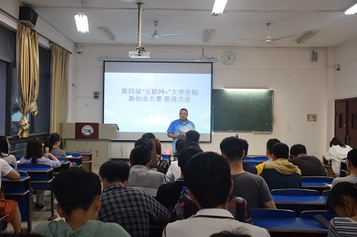 会中,杨青宣读了《关于举办第四届“互联网+”大学生创新创业大赛的通知》,并对参赛对象、参赛要求以及赛程安排进行简单介绍。