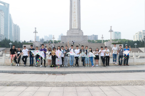 在八一起义纪念碑下,全体成员手拿风筝、挥毫泼墨,在风筝上作出一幅幅有关党团的图样,书写着明天的梦想。同学们大胆发挥、敢于创作,或以纪念十九大为题,或书写对新中国的期盼,国旗、党徽、标语......一幅幅带着希望的图画,在同学们的笔下创造出来,在炎热的夏日绽放青春活力。