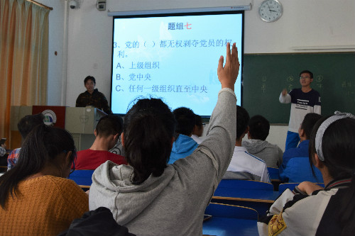 “十九大的全称是什么?”、“哪次会议决定了党的十九大召开时间、地点?” …… 在限时抢答环节中,同学们纷纷积极举手,踊跃答题,一个个热点问题都没有把同学们难住。