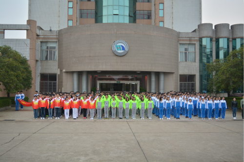 在国防生嘹亮的口号中,国旗班踏着整齐的步伐走向升旗台;伴随着同学们响亮的国歌声,国旗冉冉升起,随风飘扬,同学们纷纷行注目礼。