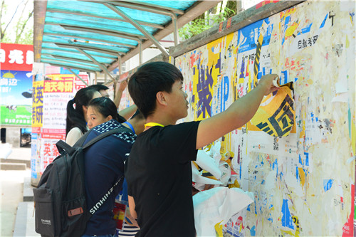 听闻第二天还有志愿清扫小广告的消息,不少16级的入党积极分子也报名参加。通信专业胡光妍说道:“前几日刚刚听取‘党旗飘扬’的主题班会,学习了不少关于党的知识,参加这次志愿活动,希望能够学习到如何做一名党员。”党员和志愿者们手拿小铲子、小刷子、水桶等清除工具,对四食堂附近展板张贴的小广告进行了集中清理,这次活动共铲除小广告数十条。学生党员们用自己的实际行动为清洁校园、爱护环境作出了努力,使校园的环境卫生得到了一定改善。