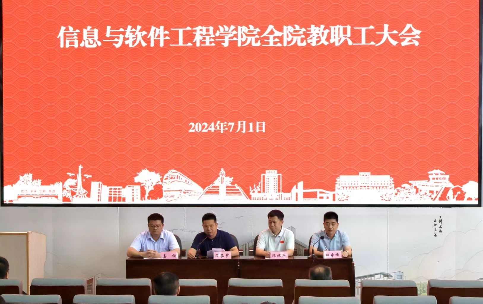 7月1日,信息与软件工程学院在南区图书馆202报告厅召开全院教职工大会。校党委副书记、校长徐长节出席会议并讲话。