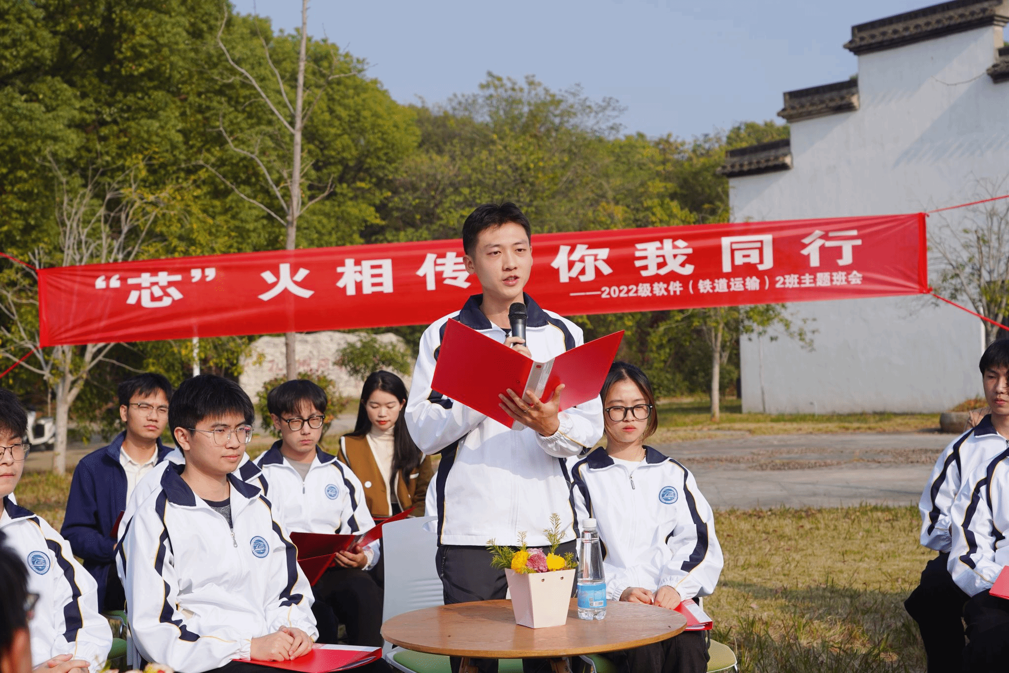 孔目湖畔,书声琅琅。12月4日下午,校党委副书记、校长徐长节参加信息与软件工程学院2022级软件(铁道运输)专业2班“‘芯’火相传 你我同行”主题班会。