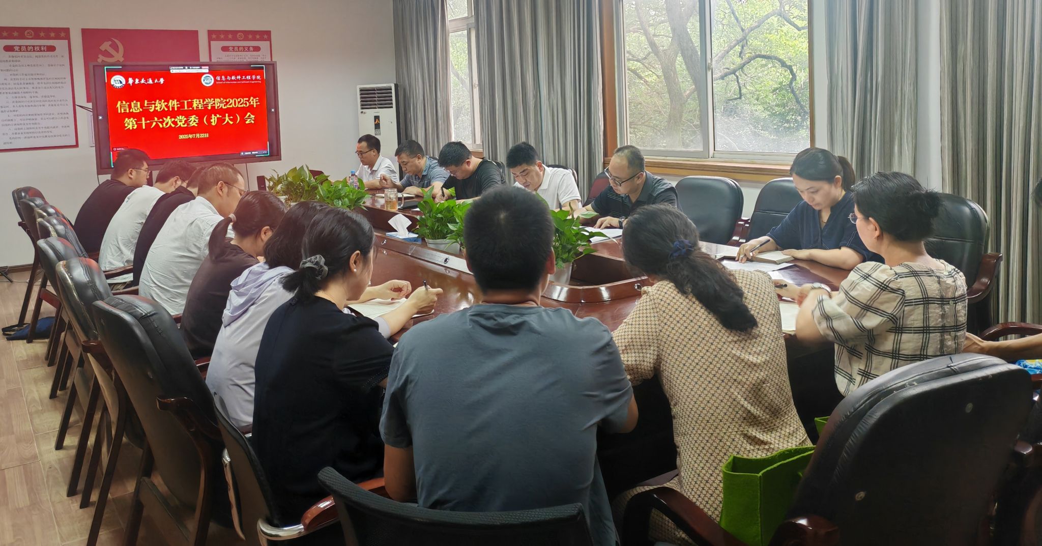 2025年7月22日上午,信息与软件工程学院采用线上线下结合形式召开党委(扩大)会议。院党委书记魏永峰同志主持会议,院党委班子成员出席会议,各系部主任、科级干部、党支部书记及进贤教学点辅导员列席会议。