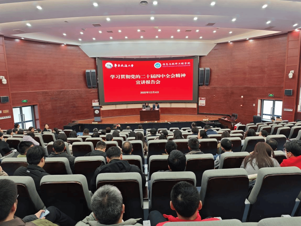2025年12月4日,信息与软件工程学院学习贯彻党的二十届四中全会精神宣讲报告会在北区圆形报告厅举行。会议邀请校宣讲团成员、马克思主义学院优创思政工作室负责人徐杰玲副教授作专题宣讲。学院党委书记魏永峰主持会议,学院领导班子成员及全体教职工参加。