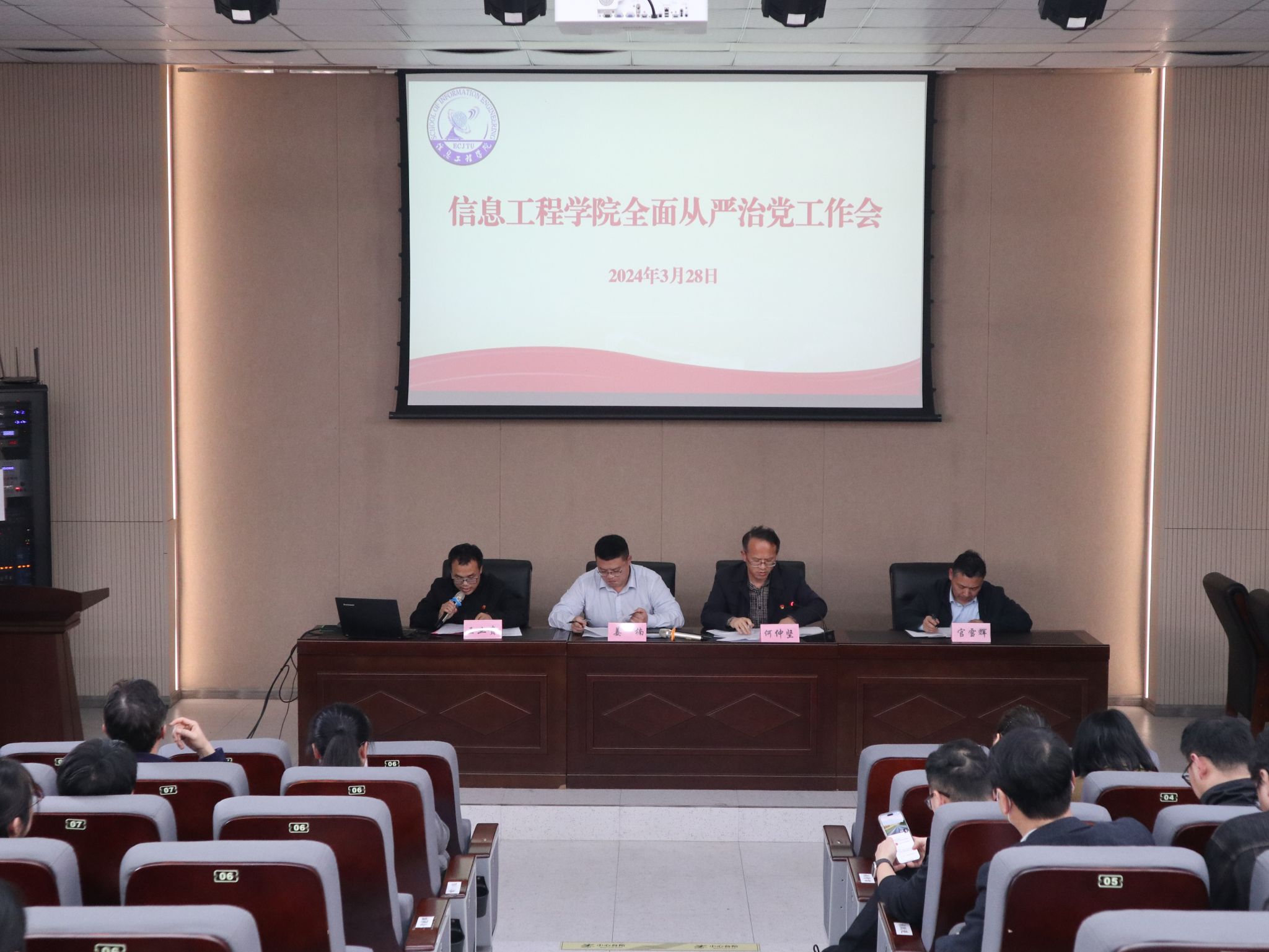 为深入贯彻落实学校2024年全面从严治党工作会议精神,全面推进学院全面从严治党工作,3月28日,信息工程学院党委召开2024年全面从严治党工作会议,全体教工和学生党员代表参加会议。
