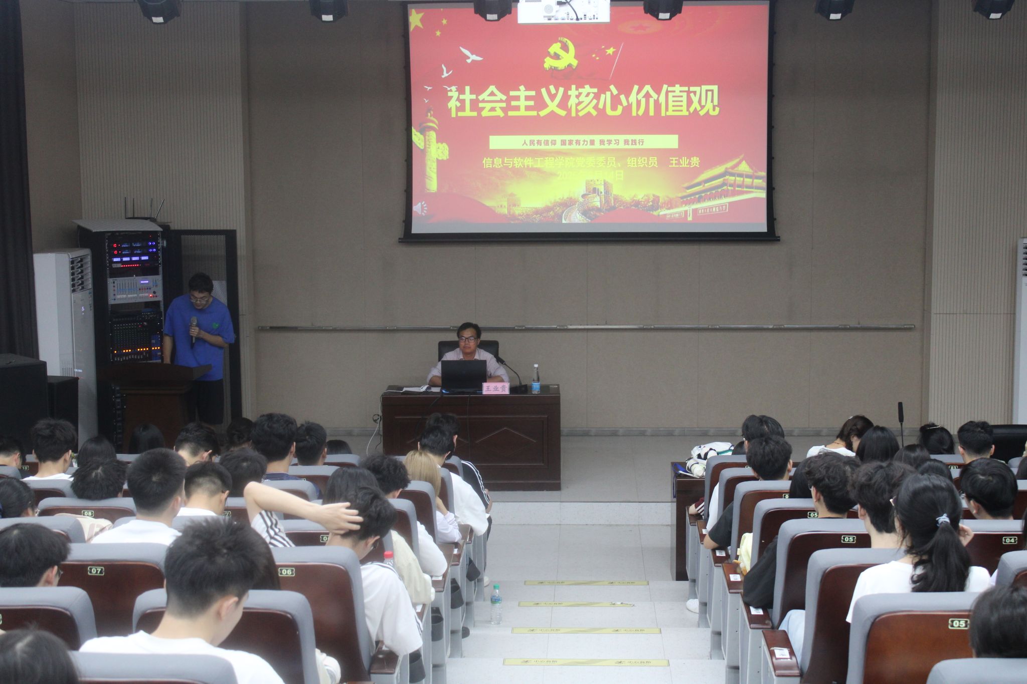 5月14日,信息与软件工程学院分党校于教五栋108报告厅举行了第二期发展对象培训班党课第二讲《社会主义核心价值观》,此次课程由信息与软件工程学院党委委员、组织员王业贵主讲,培训班全体学员参加。