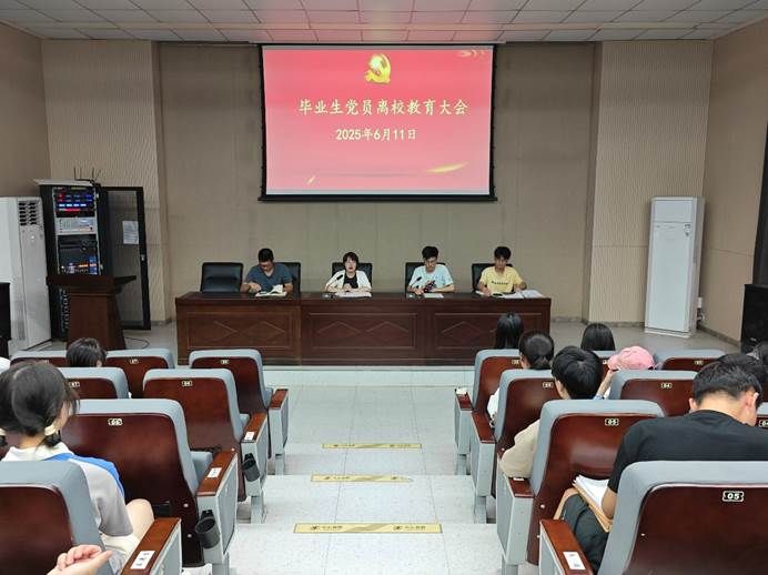最后,会议对毕业生党员开展了离校教育,就毕业生党员离校档案审查、封档及组织关系转接等事宜作了详细介绍。