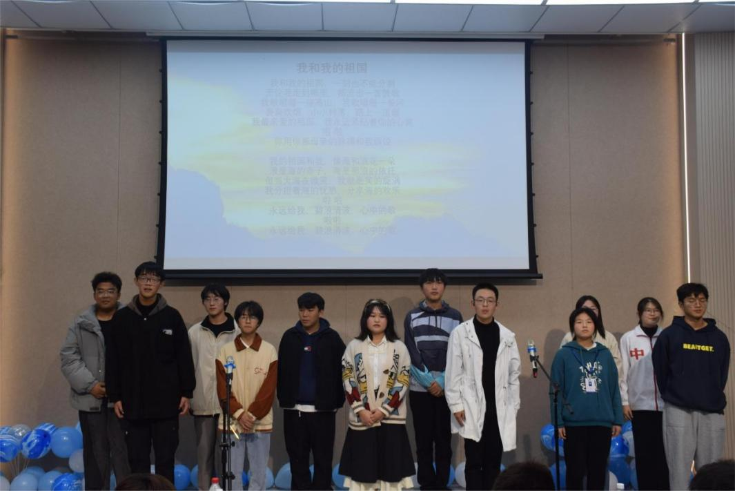 在比赛结束之后,所有选手和在场观众一同唱响《我和我的祖国》,每位选手都带着青春昂扬的精神面貌,纷纷用此歌声表达着自己对祖国与党的热爱之情。在党的二十大刚刚结束之际,选手们更是对祖国与党充满热忱,热情高涨。“放歌二十大 奋进新征程”,青歌赛不仅促进了各学院之间的友好交流,增进了同学之间的美好友谊,更通过歌曲的传唱,推动青年朋友们积极学习贯彻党的二十大精神,让党的二十大精神“声”入人心。