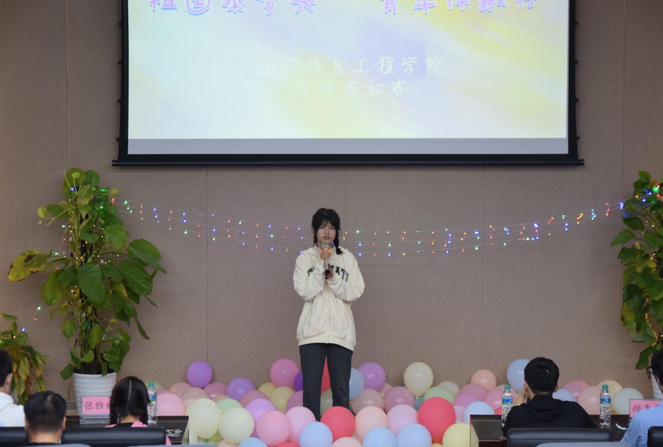 微风习习,桂花飘香。为迎接党的二十大,展现同学们的青春活力,10月15日,信息学院于校友报告厅108举办了“祖国乘梦兴,青年伴歌行”青歌赛初赛。