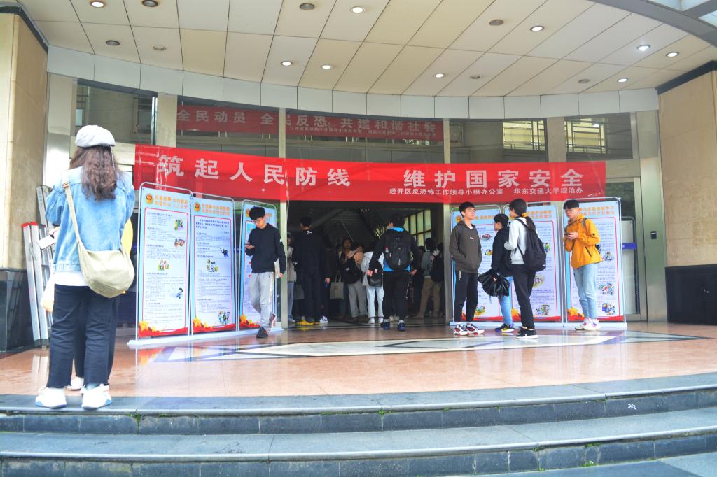 为提高大学生反恐意识,维护国家安全,4月15日,经开区反恐怖工作领导小组来到华东交通大学,在南区图书馆举办“国家安全教育日”活动,信息学院积极参与。