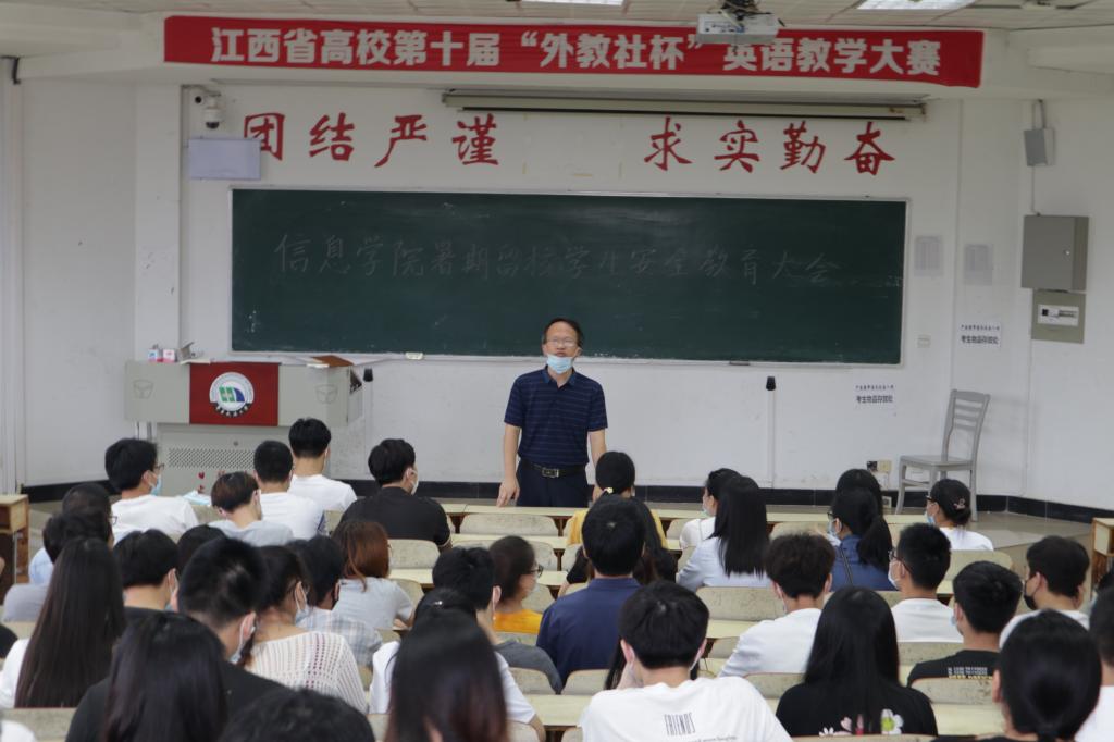 为强化留校学生的安全防范意识,7月10日,信息学院于图书馆301召开暑期留校安全教育大会。信息学院党委副书记何仲坚出席会议,辅导员艾国金主持会议,信息学院全体留校学生参与会议。