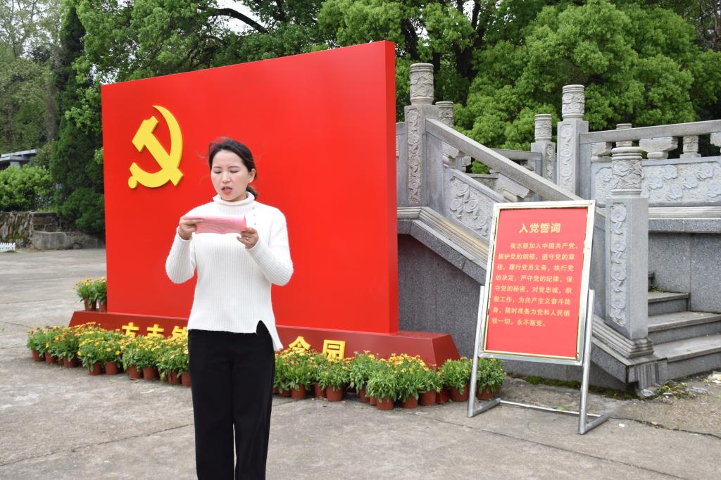 杨青为学员讲解方志敏烈士的历史故事,并表示:“今天我们来到方志敏烈士陵园,一是为了缅怀先烈,不忘革命历史,二是为了学习党史,传承红色文化。正如习近平总书记所说:‘祖国是人民最坚强的依靠,英雄是民族最闪亮的坐标。’我们确实看到了方志敏笔下中国可赞美的前途,先辈用血汗换回了我们的今天,今天的我们也不能忘记前人的奋斗。”
