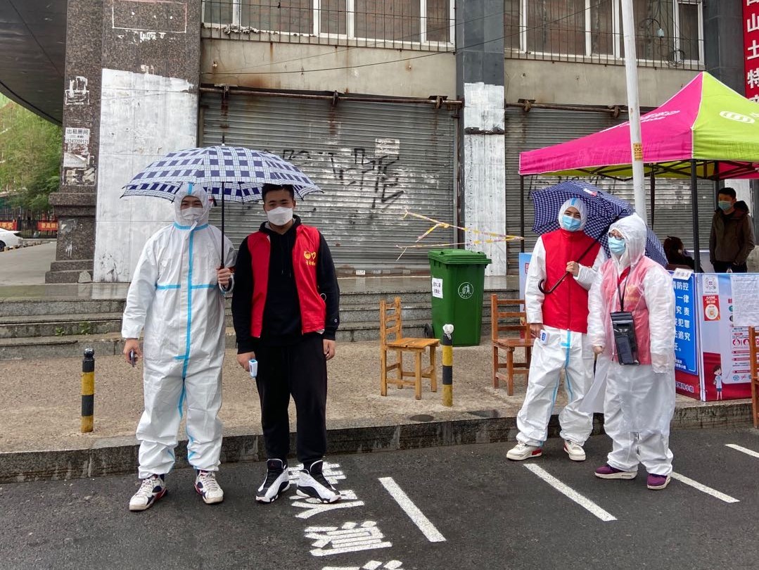 在学院其他同学纷纷返校之际,仍有一批志愿者因为严峻的抗疫形势坚守岗位。5月17日,吉林省吉林市丰满区风险等级由中风险调整为高风险,青年志愿者林书涵冒着被感染的风险,赶赴抗疫前线参与“战斗”。