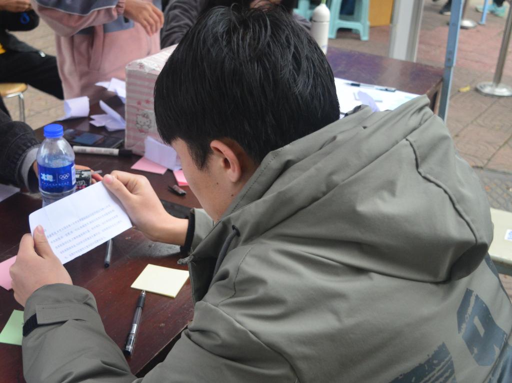活动主要分为游戏和采访两个部分。游戏环节中,参与者通过“一分钟抄写”,将抽签条上的法律法规、相关案例正确抄写且达40字,即可将便签贴在宣传板上合影留念并获得参与奖品一份。活动使参与者在体验游戏乐趣的同时收获相关知识,倍受广大师生好评,不少受访者纷纷表示收获颇多,希望能为校园平安建设添砖加瓦。期间,省委省政府戒毒中心的公安人员也打卡参与“一分钟抄写”,并对我院的宣传活动给予肯定。