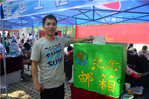 “纪念邮箱”则为新生家长提供一个表达心声的机会,志愿者提供“亲情”信封,孩子家长把对孩子的嘱托汇聚成一行行文字,传递来自邮筒的爱,这份来自家长的“惊喜”也会伴随着合影照片在军训后送到新生手中。“趁着孩子不在,刚好把我的想法告诉他”,新生李宇轩妈妈笑着说。