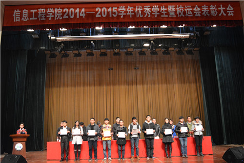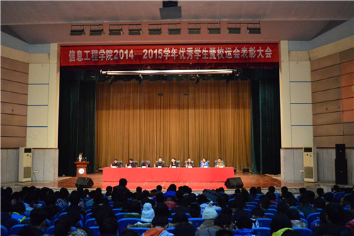 12月14日晚,信息学院于南区礼堂召开2014-2015学年优秀学生暨校运会表彰大会,华东交通大学学工处处长陈磊,信息学院党委书记汤兆平及院其他领导老师出席大会。