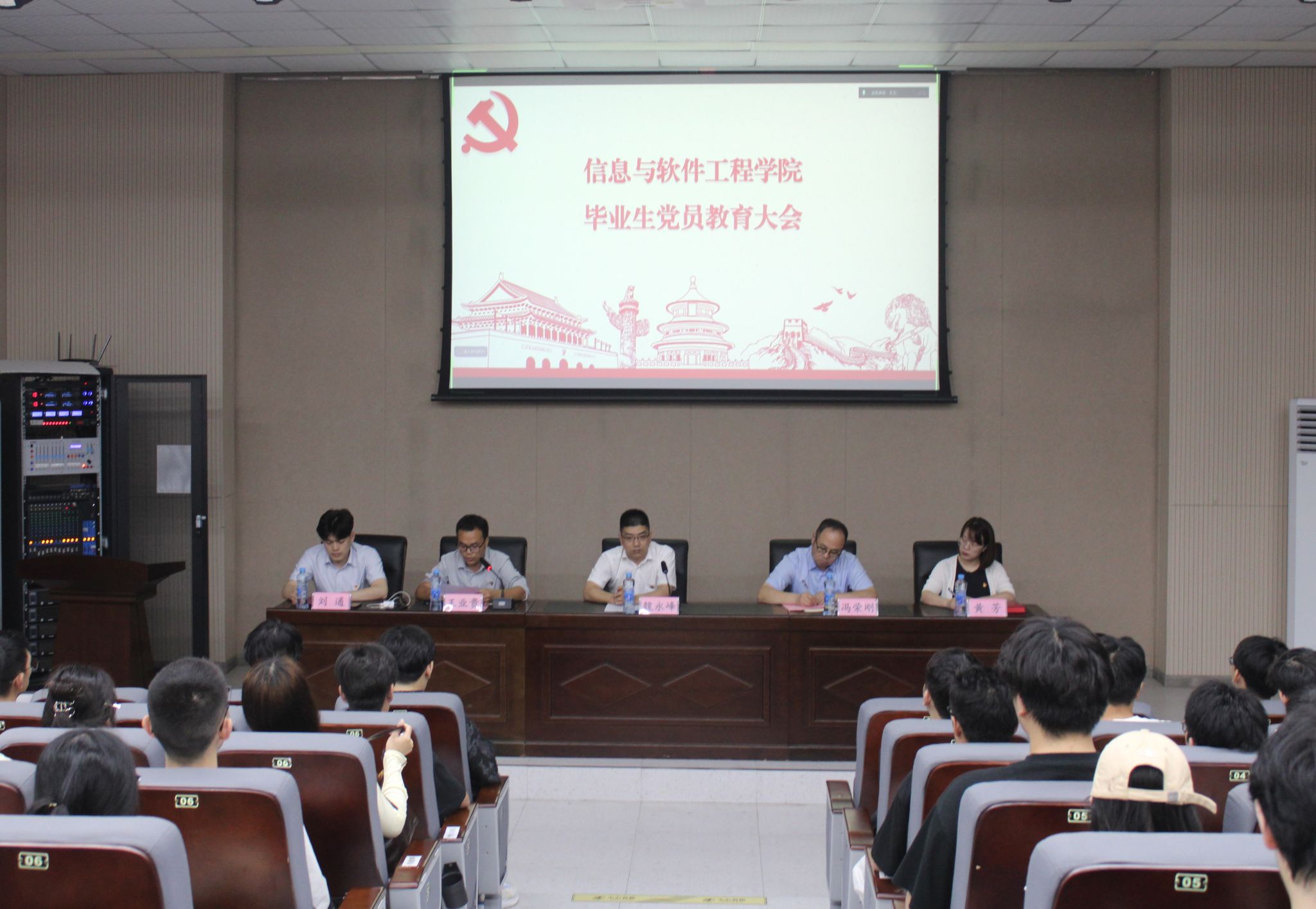 为强化毕业生党员的政治意识和责任意识,鼓励毕业生党员在新征程继续弘扬华交“火车头”精神,展示信工“‘芯’铁军”形象,6月11日,信息与软件工程学院于南区教5栋108报告厅开展信息与软件工程学院毕业生党员离校教育。学院党委书记魏永峰,党委副书记冯荣刚,党委组织员黄芳,党委兼职组织员刘通出席会议。会议由学院党委委员、党委组织员王业贵主持,2025届全体毕业生党员参加。