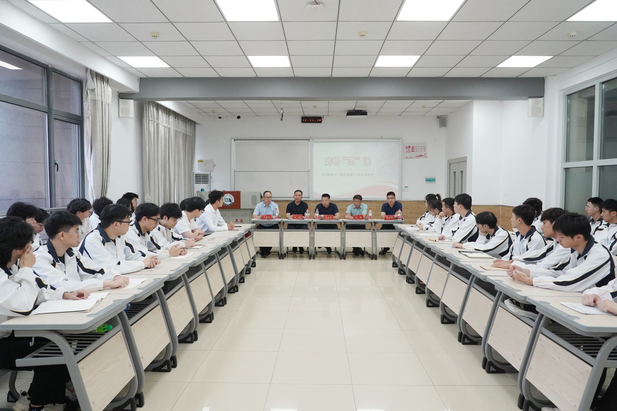 党办校办、招就处、信工学院负责人,2022级软件(铁道运输)专业2班辅导员及全体学生参加班会。