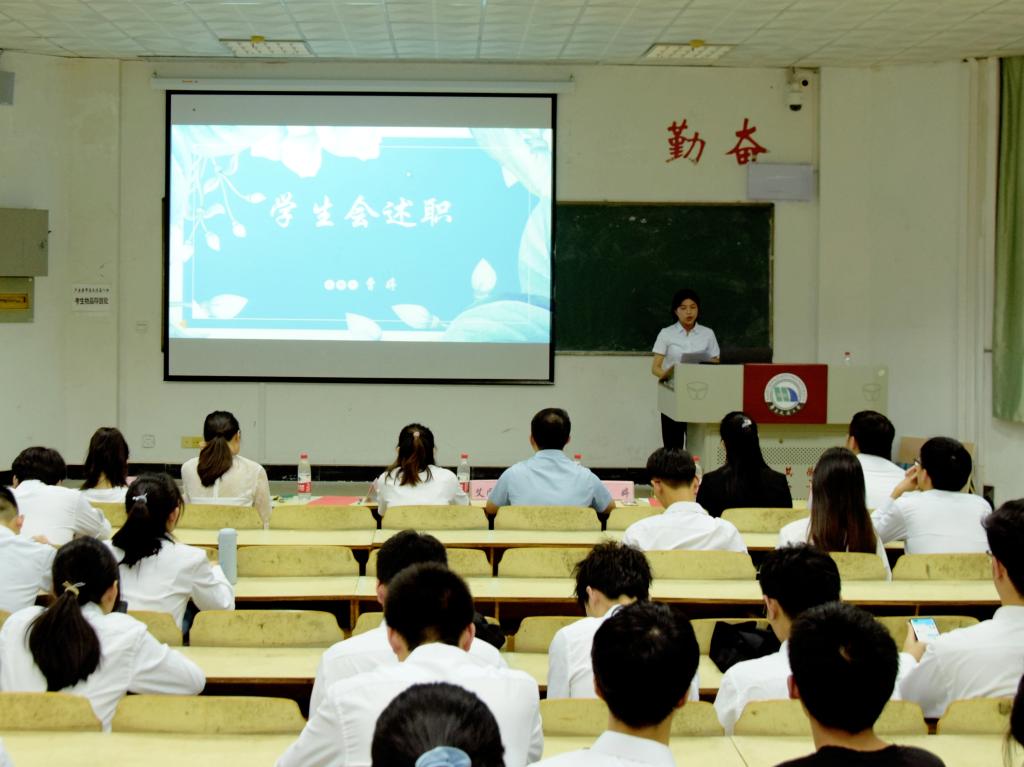 激情澎湃的团歌犹绕在耳,学生会及团属学生组织主席团及各部门负责人便开始了述职。主席团成员鼓励大家躬身入局,保持热情,积极投入到部门工作之中。各部门负责人介绍了部门成员的成长历程,总结了部门一年来的工作成果与工作心得,作出了增强部门凝聚力热心服务同学的承诺,并对未来进行了规划与展望。