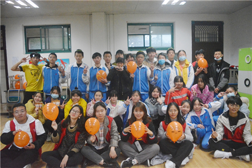 志愿者带领启音学校学生做互动游戏。“运输糖果”环节,启音学生们脑洞大开,将盘子折成不同的形状,协力运送糖果;“背夹球”环节,同学们二人协作、合力运球;“丢圈圈”环节,信息志愿者与启音学生一同较量。压轴项目“绘画彩蛋”环节,志愿者在气球上写下祝福,送给启音学校的学生,让短暂的美好长久驻留。