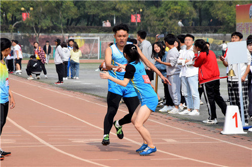 枪声一响,选手们一齐冲出,向前,向前,接力棒在选手之间传递,完美的交接是他们长期合作,团结一心的结果。只见陈爽接过接力棒,想脱缰的马极速向前,汗水从他的脸颊淌下,尽管早已疲惫不堪仍然咬牙坚持。谭华辉、谭莉、林雅丽在烈日下也跑得满脸通红,喘着粗气,即使如此接力棒还是在他们手中顺利接过。最终,他们胜利了,取得了第五名的优异成绩。这是一场速度与激情的较量,听那观众席的加油呐喊声,喊出了信息学院的青春与活力。