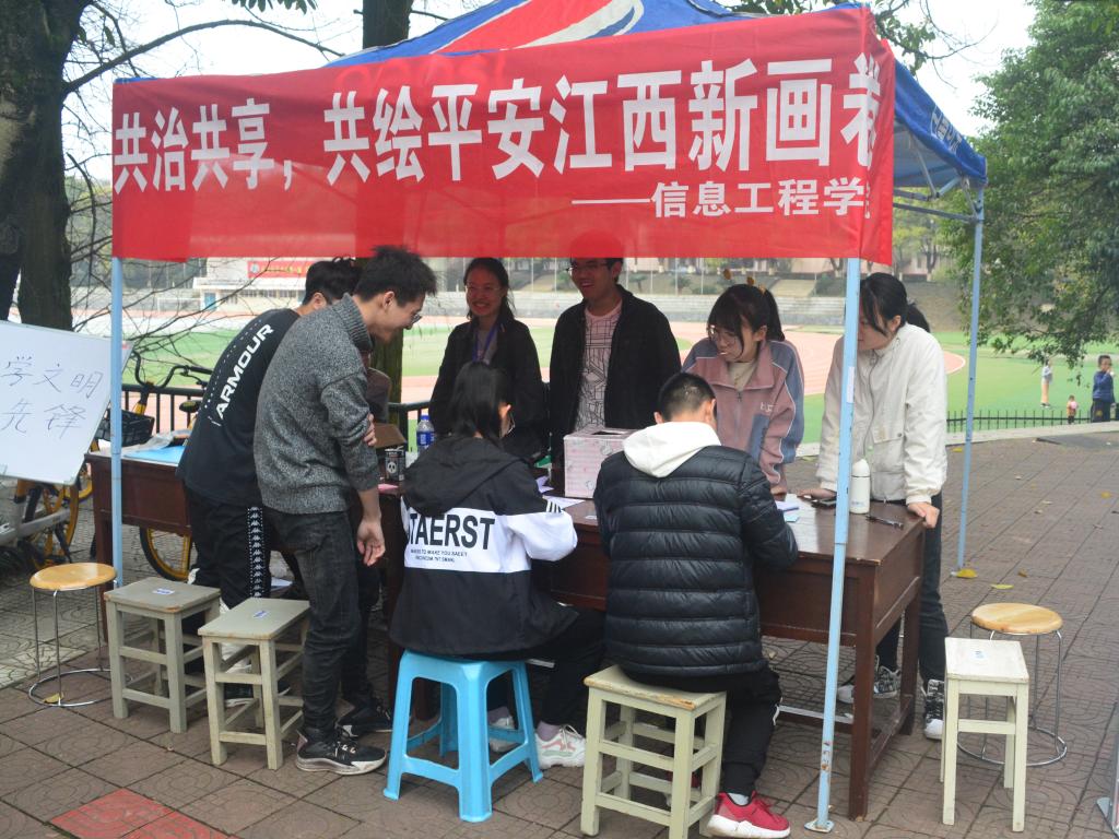 为响应中央和省委省政府号召,推动校园平安建设,营造和谐校园氛围,使广大师生了解并参与到校园治理和平安建设当中,3月13日,信息学院开展以“共建共治共享,共绘平安江西新画卷”为主题的综治宣传活动。