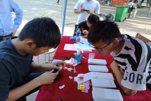 10月21日,信息学院学生卓越党支部联合17、18通信卓越班开展以“初心不改,用爱奉献”为主题的志愿服务活动。支部成员及入党积极分子于南区一食堂门口摆设摊点,利用课程及自学知识,为同学们免费提供贴膜、装系统等服务。通过前期的有效宣传,许多老师、同学们闻声而来。