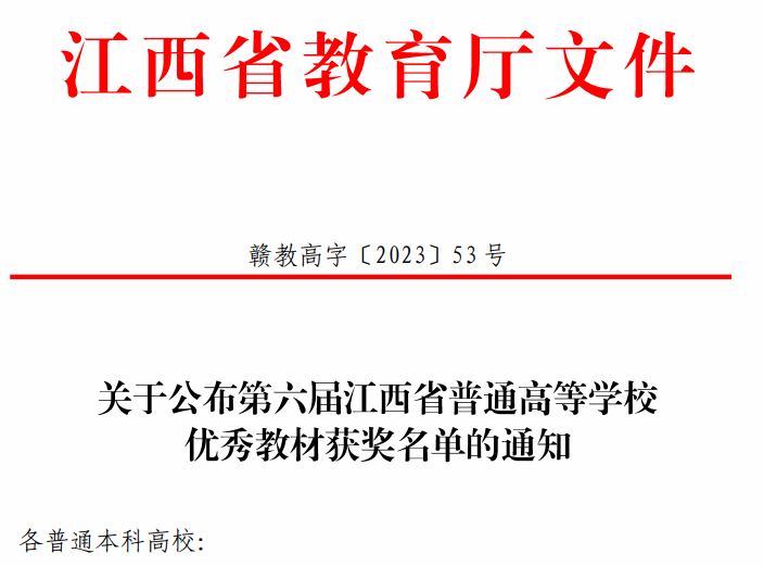 近日,江西省教育厅发布《关于公布第六届江西省普通高等学校优秀教材获奖名单的通知》(赣教高字〔2023〕53 号),公布了第六届江西省普通高等学校优秀教材获奖名单。我院丁振凡教授教材《Java 语言程序设计(第 3 版)》荣获本科教育类优秀教材一等奖,特此喜报!