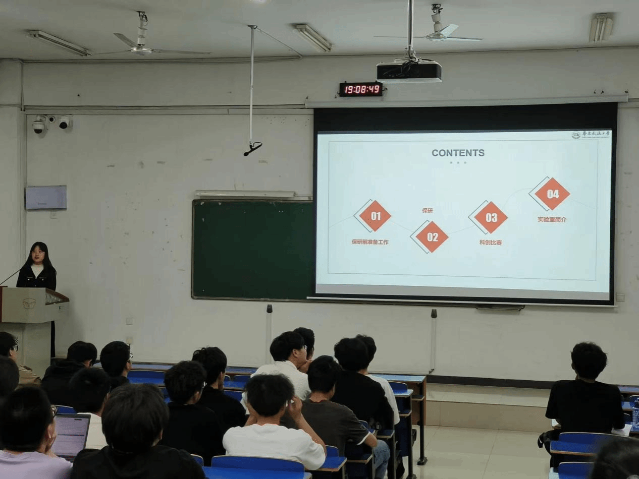 本次分享会上,雷子怡围绕保研、科创比赛、实验室等四个方面进行介绍。雷子怡就保研的流程、保研名额、保研要求以及夏令营、预推免、九推的区别等为23级人工智能的同学们做了详细地解说。