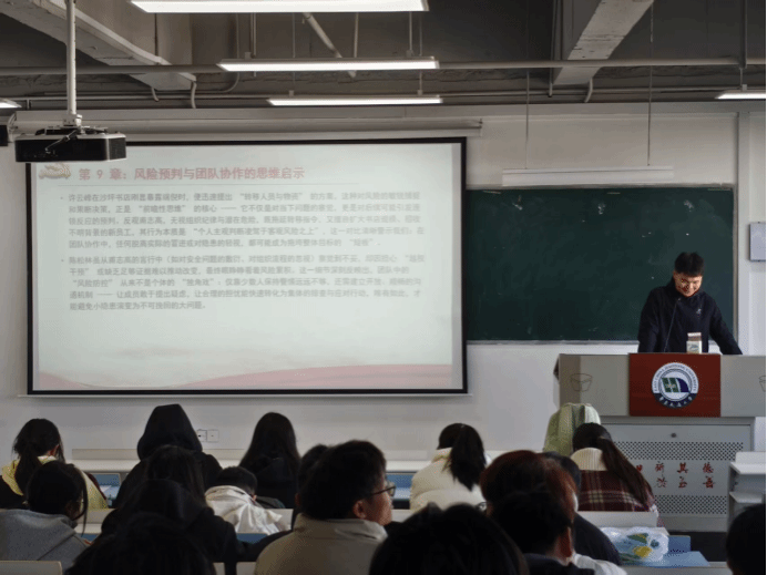 随后,廖国平同学解读人物与经典片段:许云峰的大局意识、陈松林的初心坚守,与甫志高的叛变形成鲜明对比;“许云峰拖铁镣踱步”“难友合唱《国际歌》”等片段,让同学们直观感受革命先辈的精神力量。他还提炼启示:团队中需警惕冒进、保持风险意识,面对考验要坚守价值观。